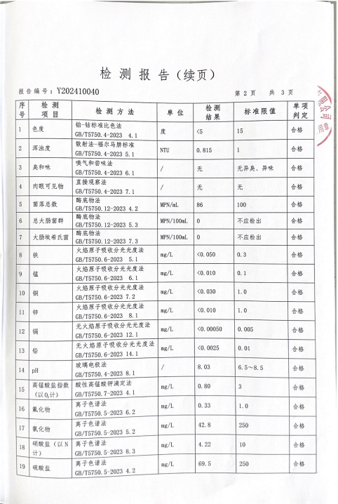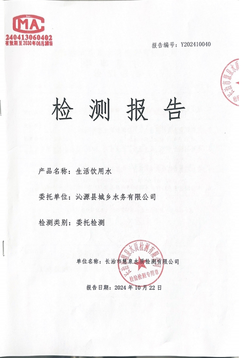 | 標題:沁源縣城鄉水務有限公司2024年第三季度水質檢測報告 | |