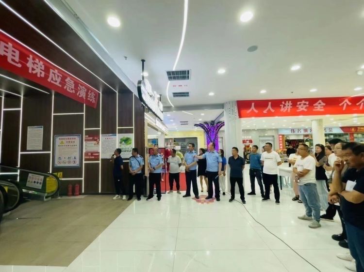 ?????會后,參會人員到華都超市觀摩電梯事故應(yīng)急救援演練。