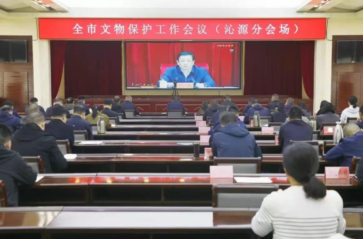 4月14日,全市文物保護工作會議召開??h領導趙永進、郭曉方、許樹鋒、段彥飛 、趙飛,以及相關單位負責人在沁源分會場收聽收看。